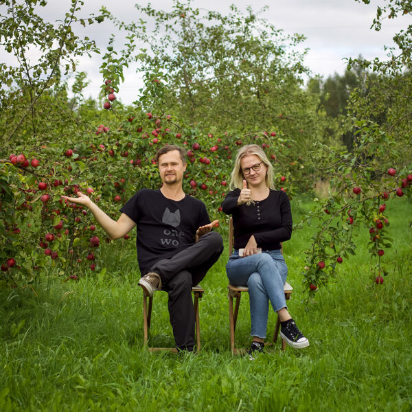 Everything from grafting and planting apple trees, taking care of the orchard, harvesting the fruit, pressing the juice, till the ready cider is done by Plūme family: wife Dace and husband Māris. They've gained knowledge while working at well known family cider production farms in Austria (Mostviertel) and France (Normandy) as well as doing lots of experiments using different fermentation technics to get different styles of cider since year 2010. Also fermented beverages like perry, fruit wines and distilled strong spirits are being made.